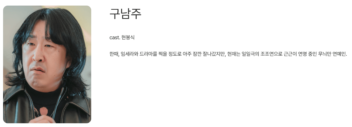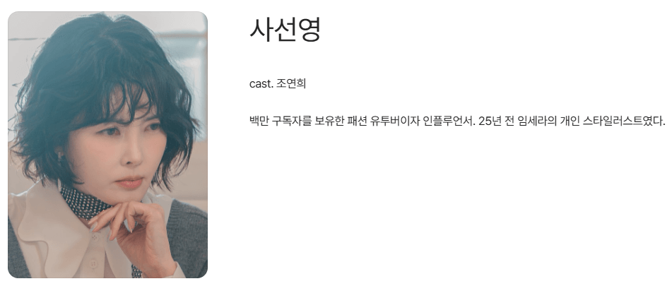 | 배우 | 캐릭터 | 설명 |