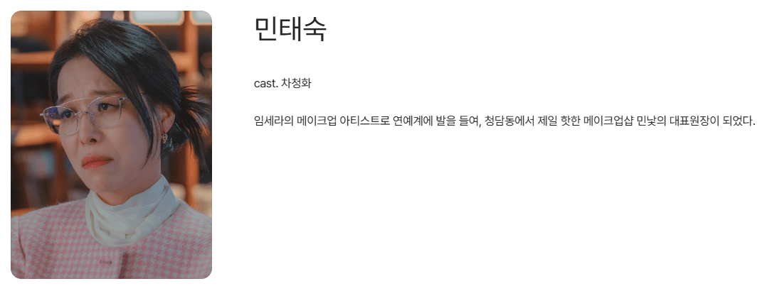 | 류태호 | 봉석봉 | 임세라의 아버지입니다. |