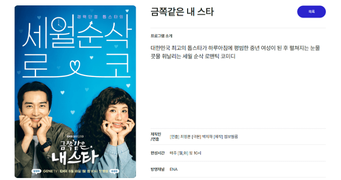 엄정화·송승헌 주연의 드라마 '금쪽같은 내 스타'에 대한 정보입니다.