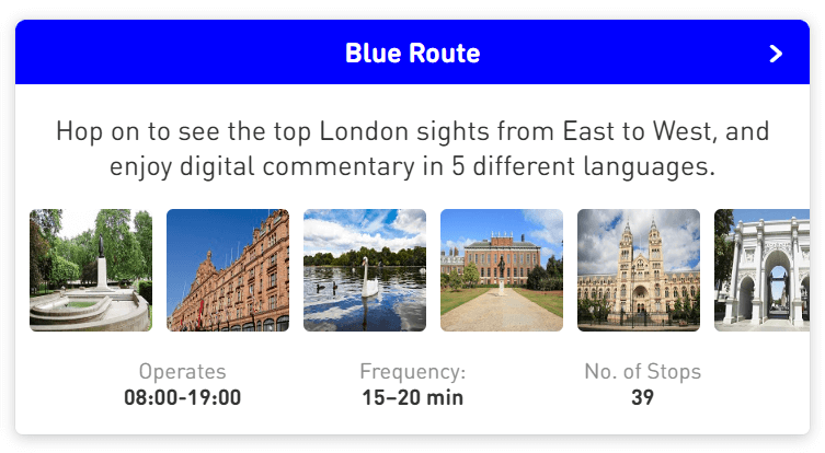 Take in the city's sights on our London Blue Route, with entertaining recorded commentary in 12 languages. View the Big Bus London sightseeing routes online.