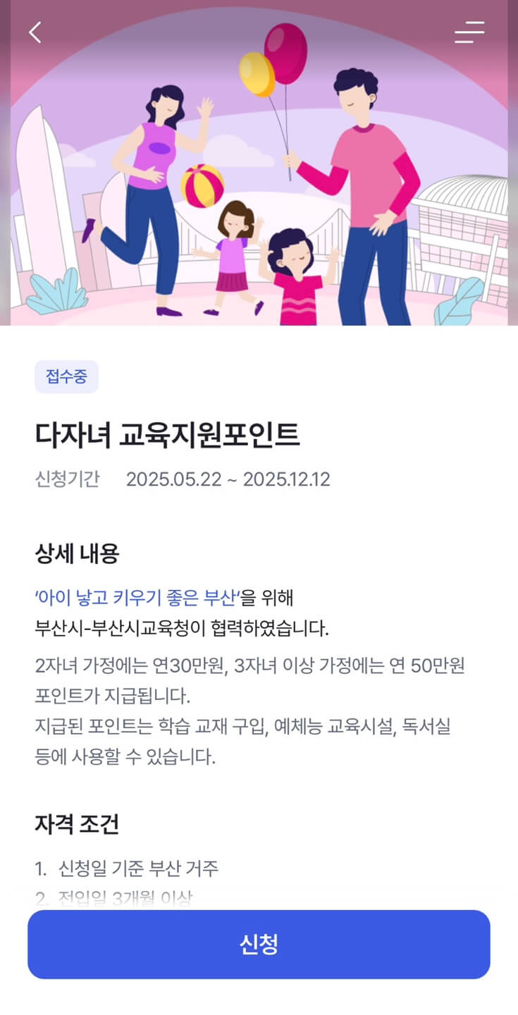 부산 다자녀교육포인트 요약 안내