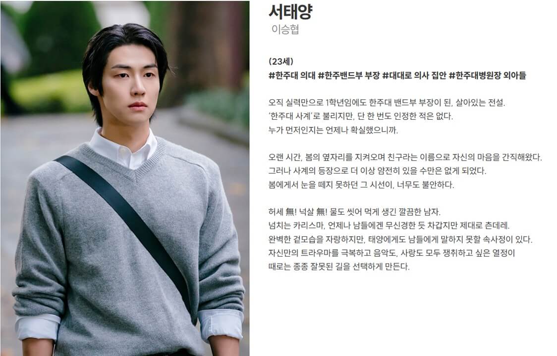 | 이승협 | 서태양 역 <한주대 밴드부장, 한주대 병원장 외아들> |