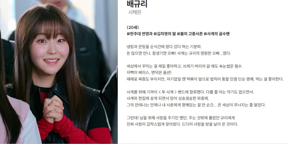 | 서혜원 | 배규리 역 <한주대 연영과, 김 봄의 고종사촌> |