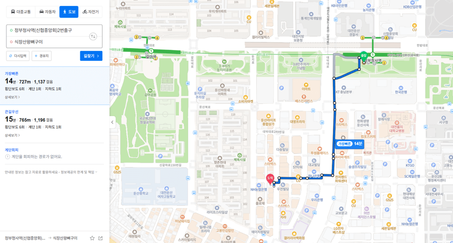 ✔ 정부청사역 2번 출구에서 도보로 약 14분 (727m)