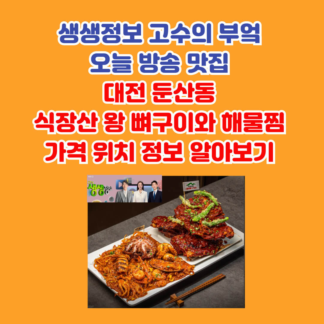 생생정보 고수의 부엌 오늘 방송 맛집 대전 둔산동 식장산 왕 뼈구이와 해물찜 가격 위치 정보 알아보기 [2286회, 5월 6일 화]