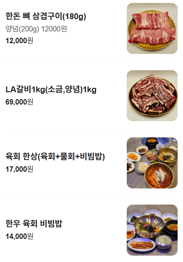| 한우 육회 물회 | 14,000 원 | |