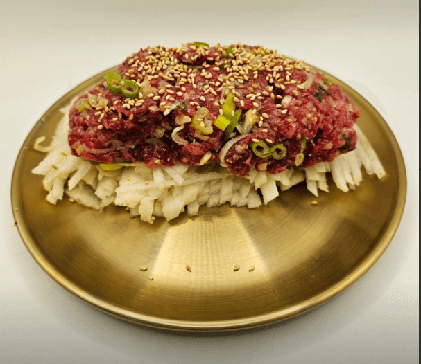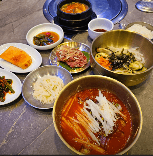 정말 빛깔부터 남다른 한우 육회 물회, 육회 비빔밥, 맛깔스러운 된장찌개까지 한 상차림으로 만나볼 수 있는 "육회 한 상"은 경상북도 경주시에 위치한 신비 전갈비에서 만나보실 수 있습니다.