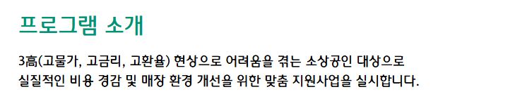 - 재신청 및 다중 사업장 지원: 동일 프로그램에 대한 재신청은 불가합니다. 대표자 1인당 1개 사업장만 지원 가능합니다.