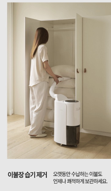 이동 손잡이와 바퀴, 만수 알림, 연속 배수, 의류/신발 집중 건조 키트 등 실용적인 기능도 갖췄습니다.