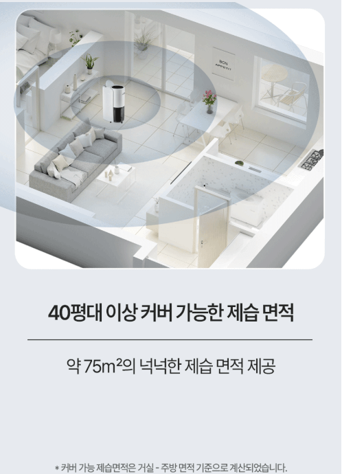 에어메이드 제습기는 1일 최대 30L의 대용량 제습이 가능하여 40평 이상 공간을 커버합니다.