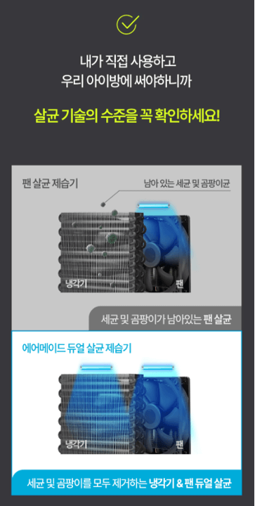 에어메이드 2000D 모델은 '국내 유일 듀얼 냉각 살균' 기술로 곰팡이 및