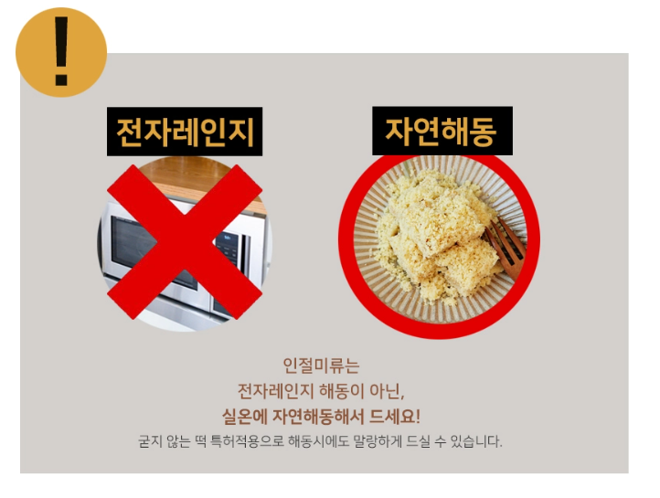 ※ 인절미류는 자연해동 O / 전자렌지 X