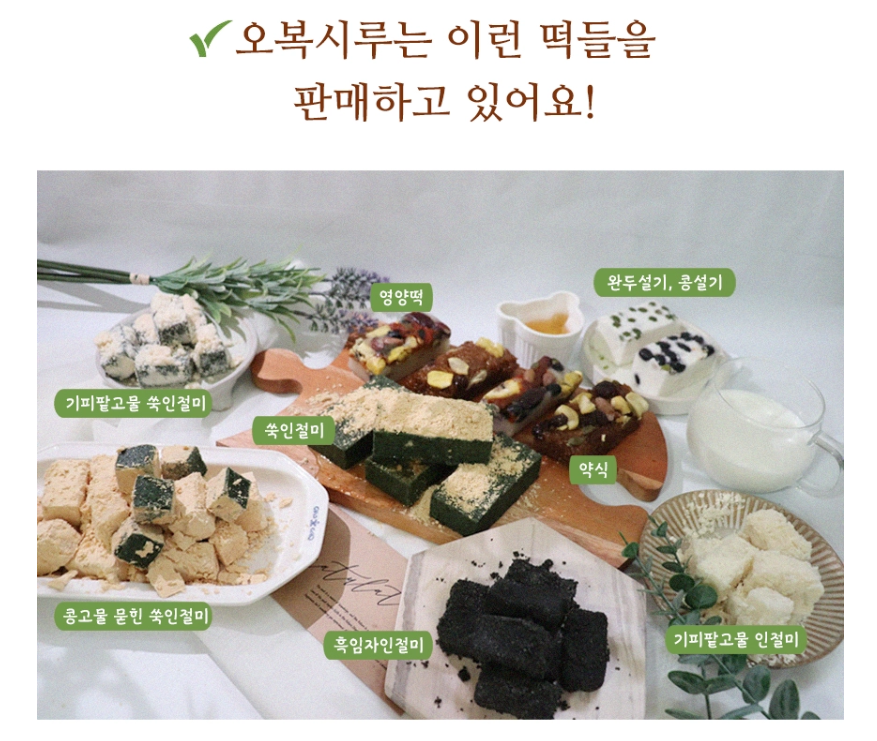오복시루의 떡은 맛은 물론 영양 면에서도 뛰어납니다.