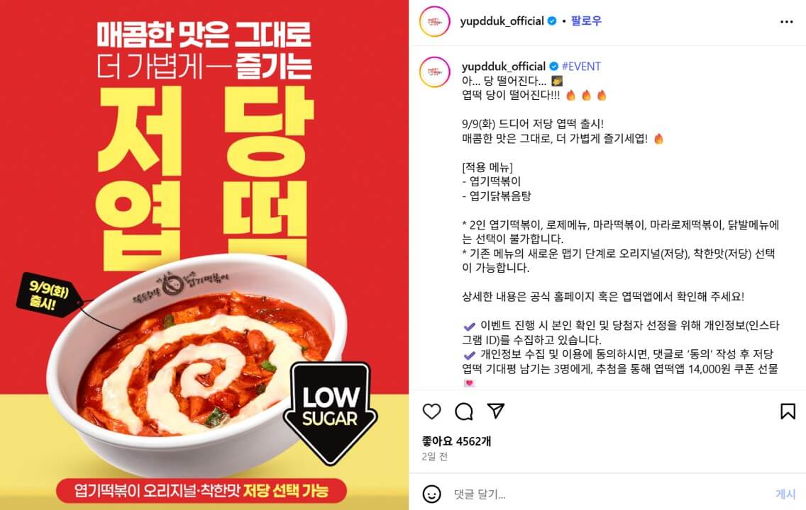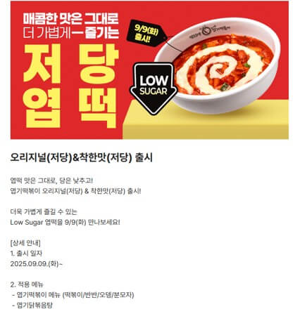 모두가 기다려온 역대급 신메뉴 '저당 엽떡'의 출시일부터,