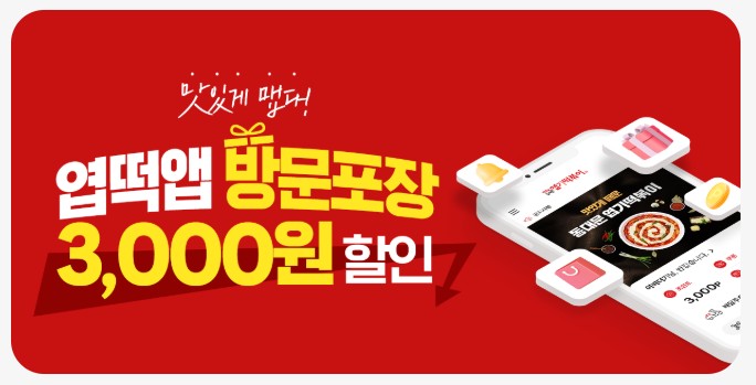 앱으로 주문할 때 가장 큰 혜택은 바로 '방문포장 3,000원 할인'입니다.