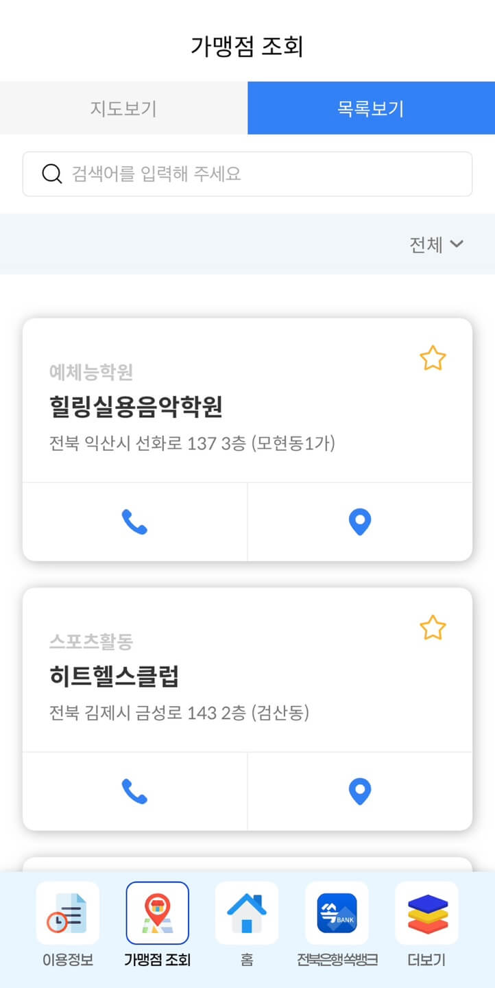 <전북에듀페이앱 다운로드 하여 가맹점 조회하기>