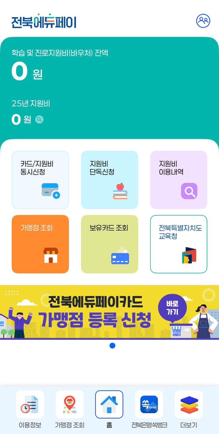 A. 전북에듀페이 앱을 다운로드하셔서 가맹점 조회하여 확인할 수 있습니다. (2025년 현재)