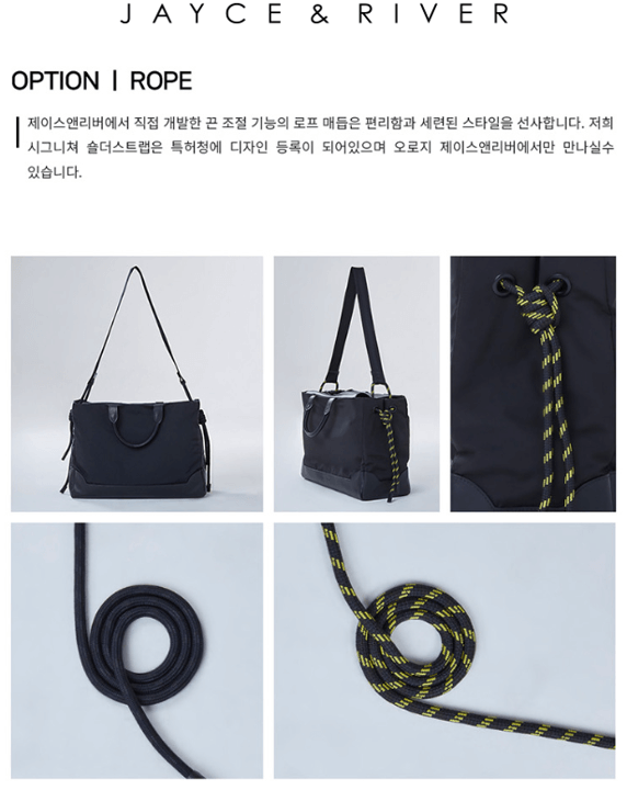 | 보스턴백 | 35 | 국내산 나일론 & 소가죽. 로프 매듭 특허 |