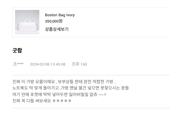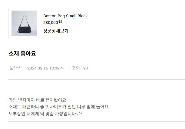 '가볍고 소지품이 많이 들어간다'는 실용성과 '친구가 가방 어디 제품인지 물어볼 정도로 디자인이 좋다'는