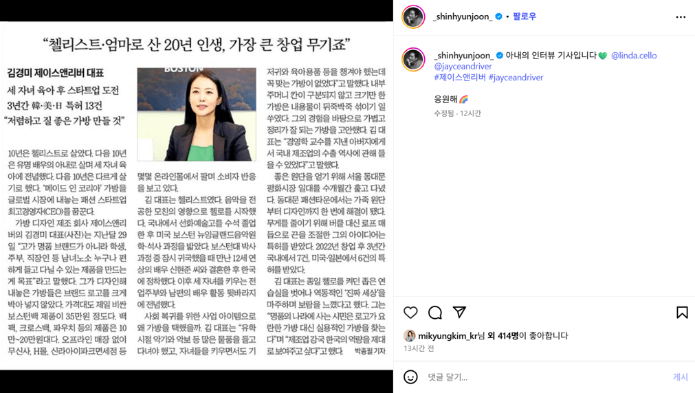 | 현재 | 제이스앤리버 CEO | '메이드 인 코리아'의 가치 전파 | 실용성과 품질을 기반으로 한 브랜드 정체성 확립 |