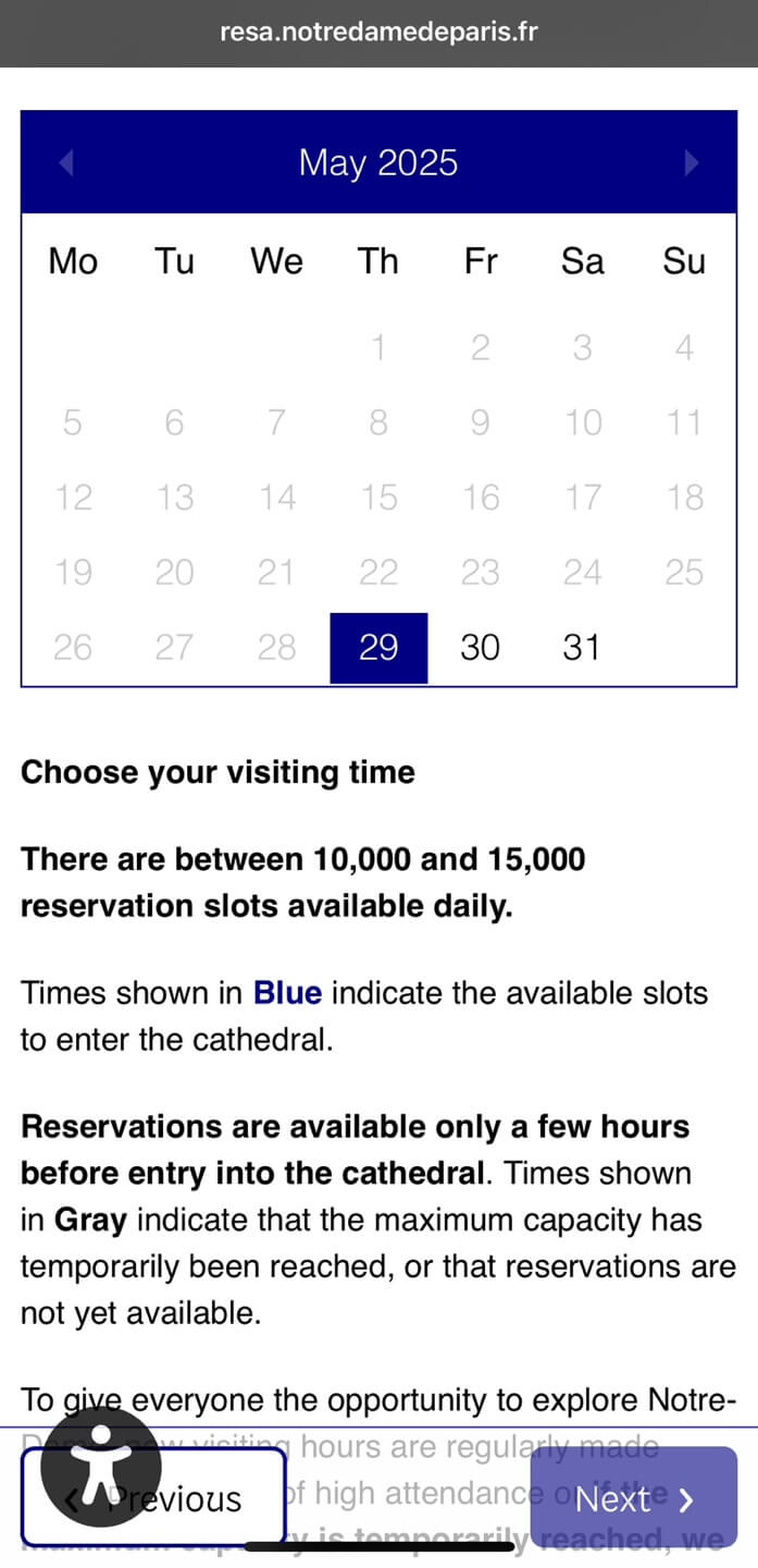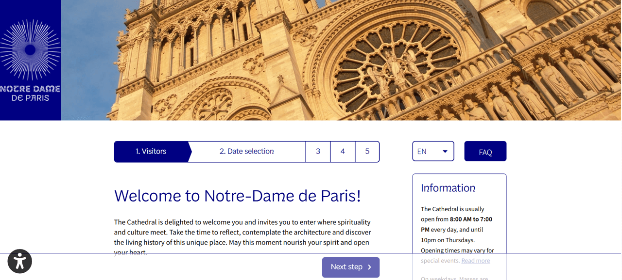 공식 웹사이트(www.notredamedeparis.fr) 또는 공식 모바일 앱 'Compagnon de visite' 을 통해