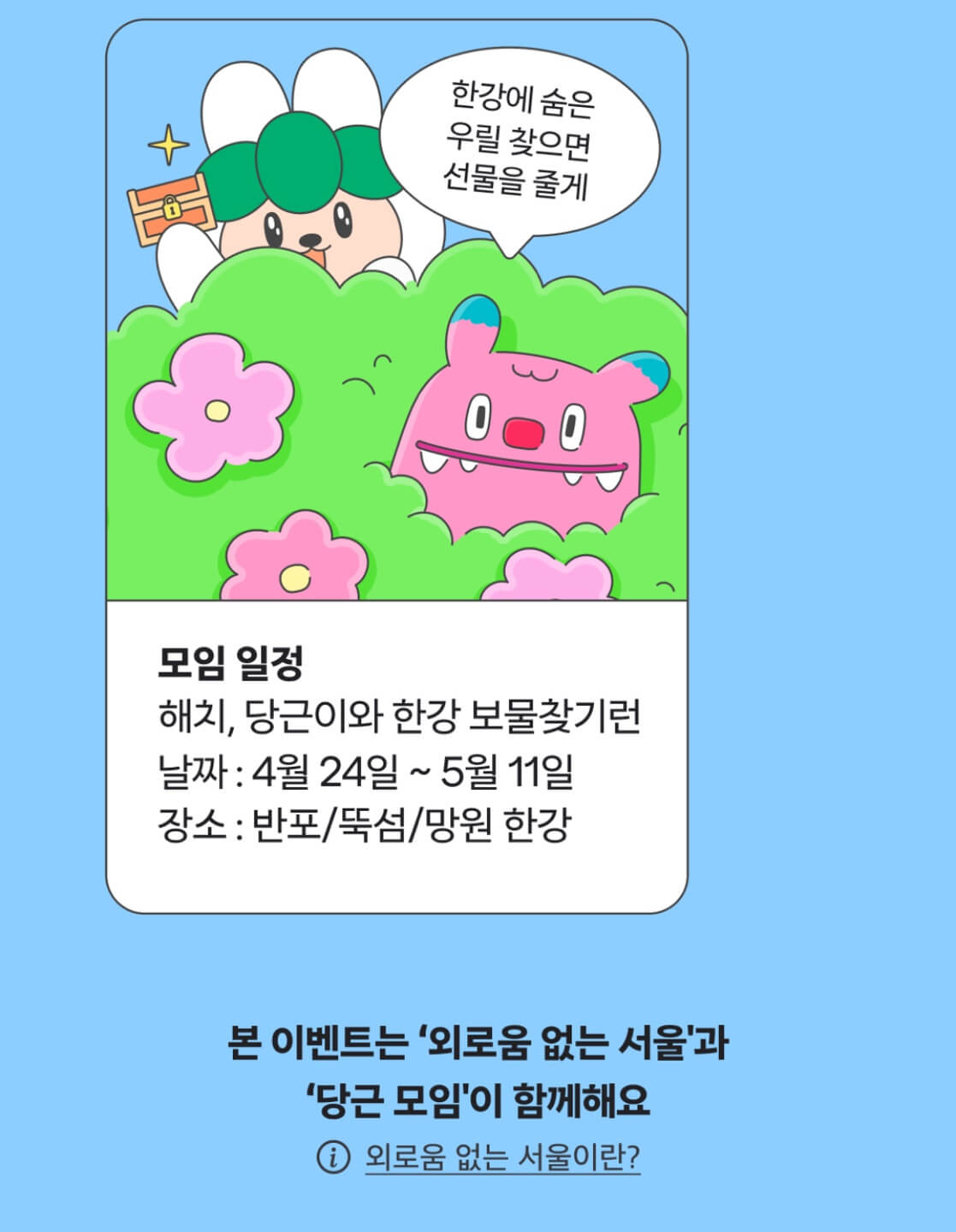 당근 앱에서 ‘한강 보물찾기런’을 검색하고 지금 바로 참여하세요!