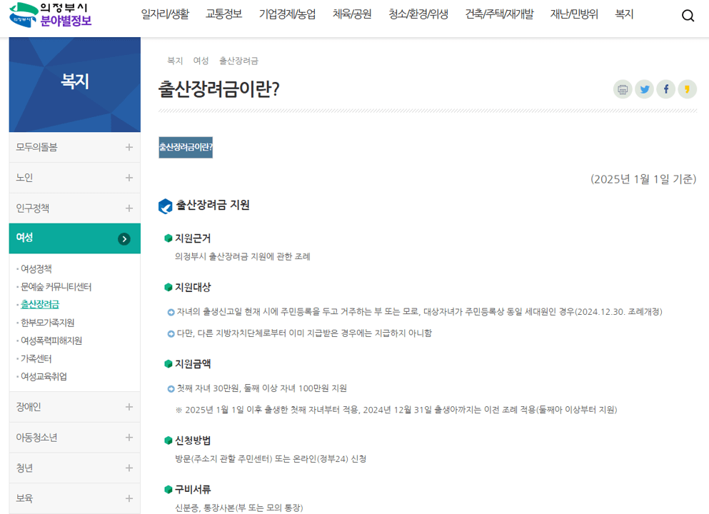 ✅ 복지로 경기도 의정부시 출산장려금 지원사업 안내