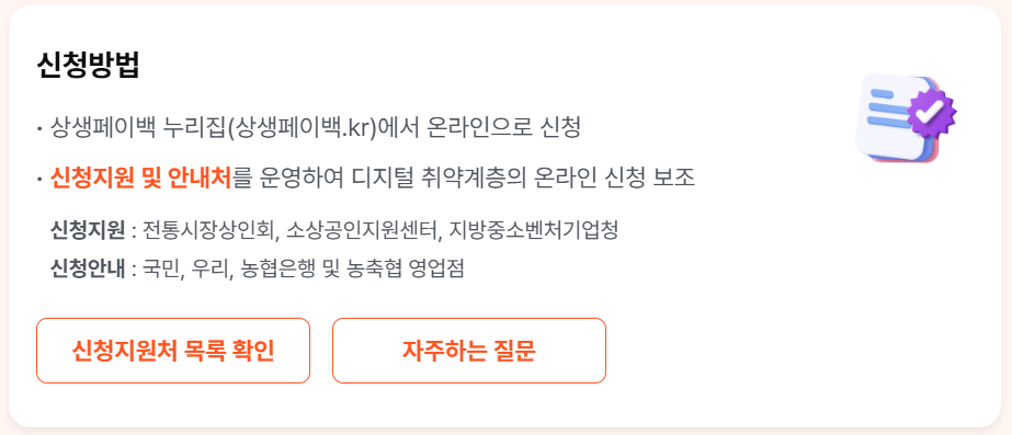 | 신청 방법 | 온라인(상생페이백.kr), 오프라인 안내 지원처 방문 |