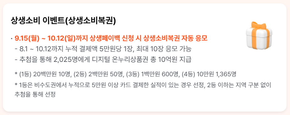 상생페이백을 신청하면 '상생소비복권' 이벤트에 자동으로 응모되는